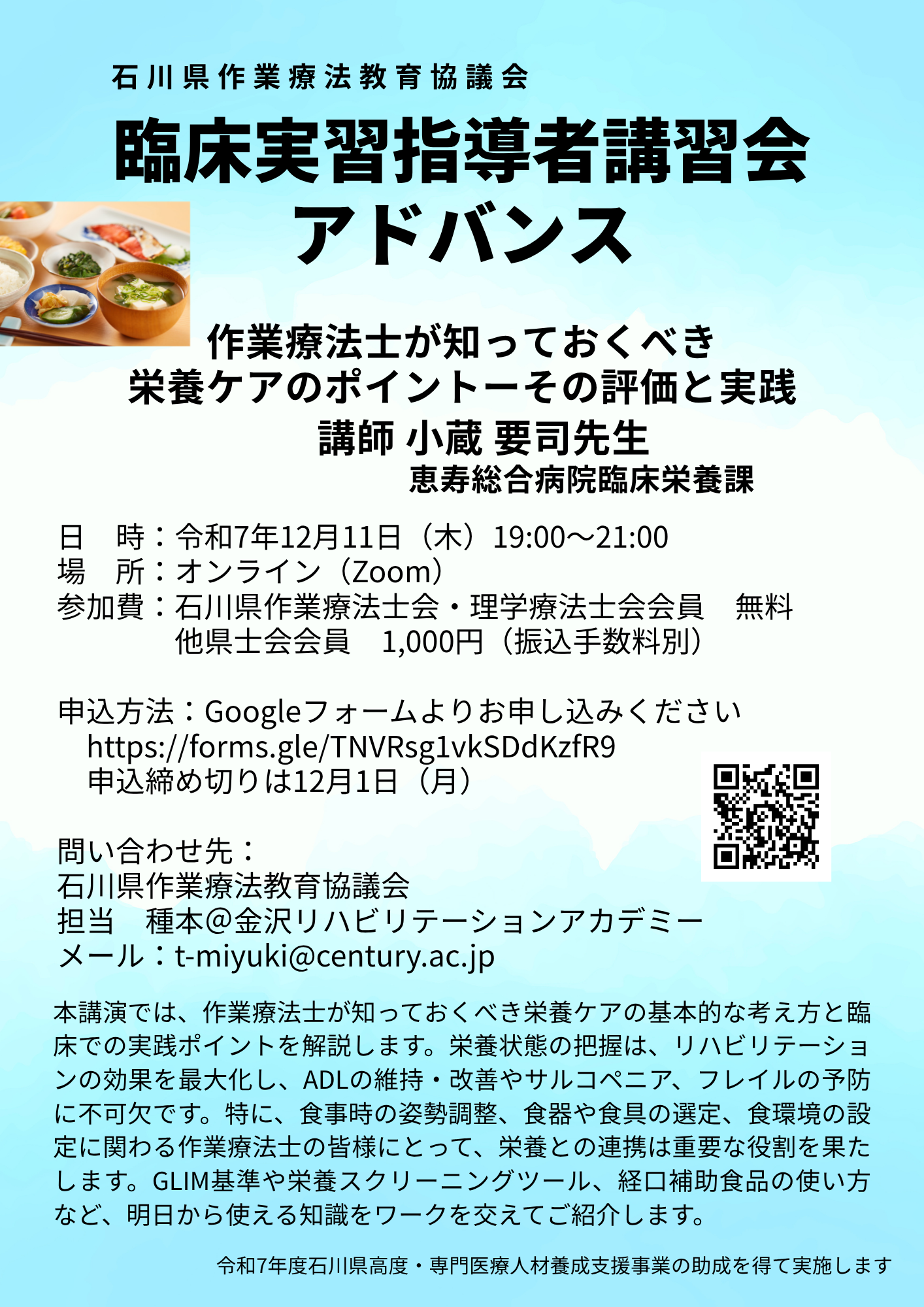2025年12月11日 2025年臨床実習指導者講習会アドバンス「作業療法士が知っておくべき栄養ケアのポイント-その評価と実践