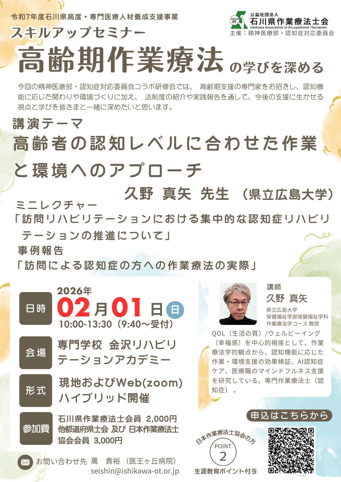 2026年2月1日 スキルアップセミナー 高齢期作業療法の学びを深める(ハイブリッド開催)
