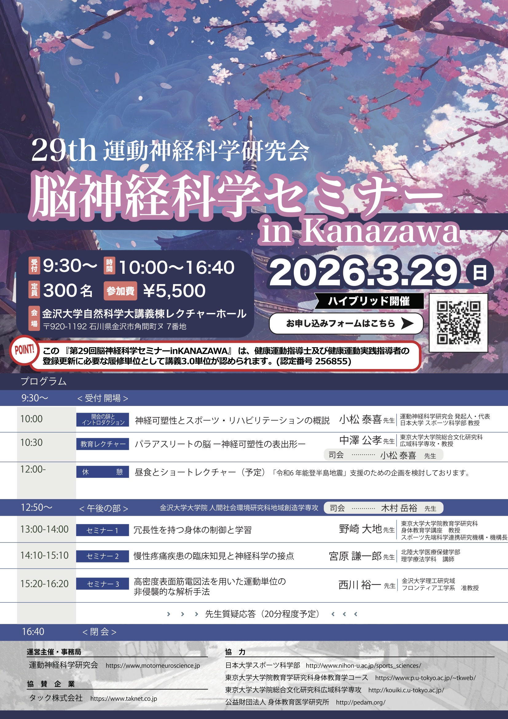 2026年3月29日 第29回脳神経科学セミナーinKANAZAWA